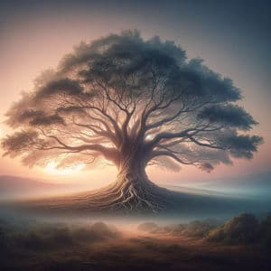 Ett träd vars grenar bär teman som ekar inom mänsklig kultur och förfinas mellan generationerna.